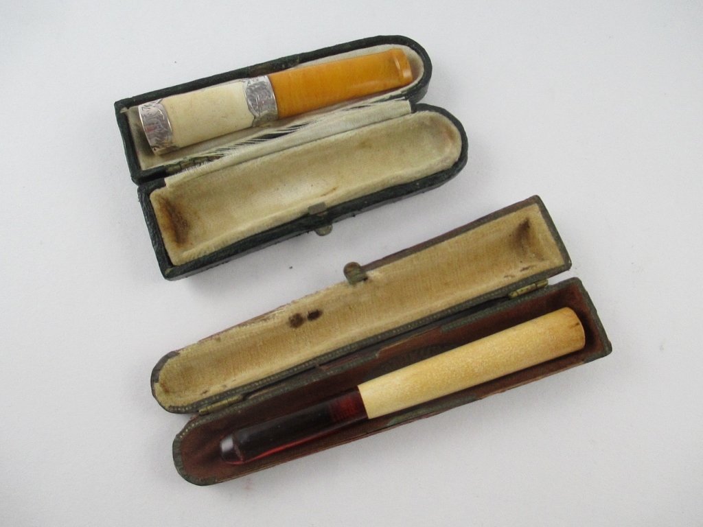 Two Amber-Mounted Meerschaum Cheroot Holders