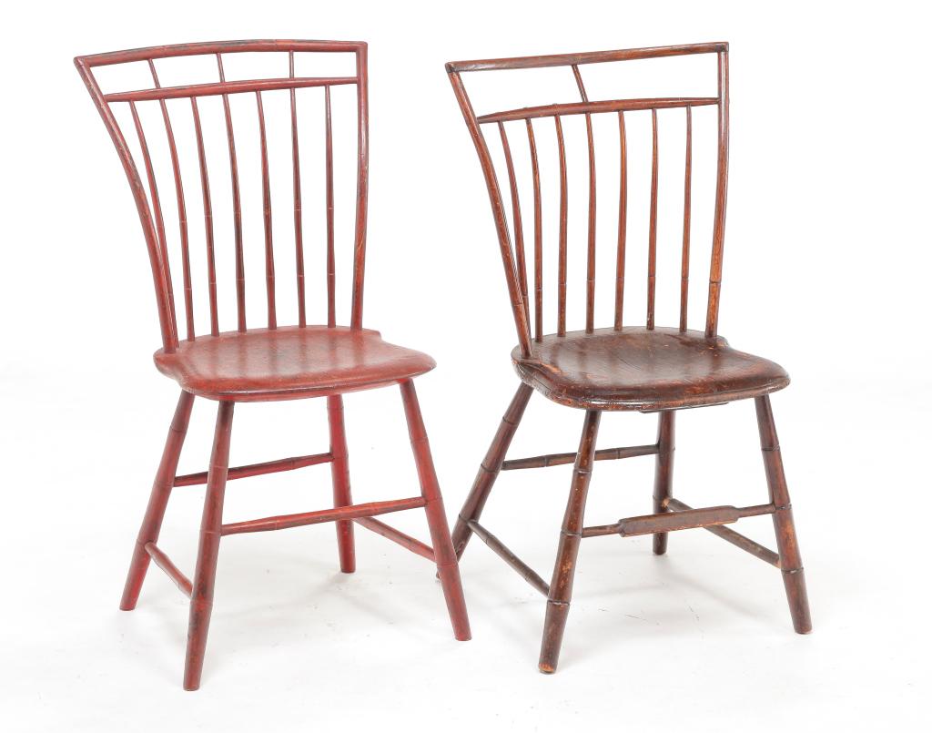 TWO AMERICAN BIRDCAGE WINDSOR CHAIRS.