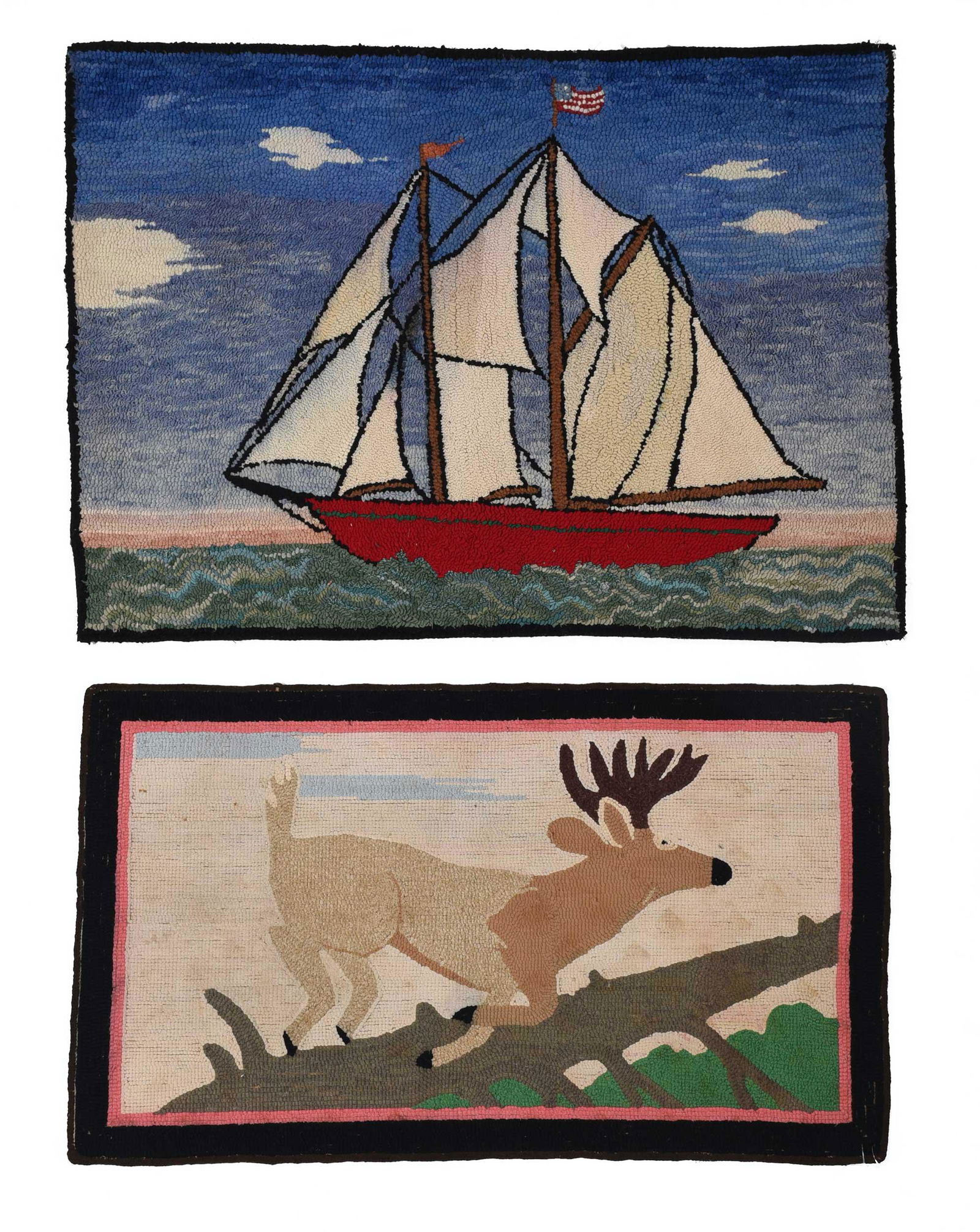 Two American Pictorial Hooked Rugs