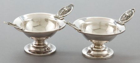 TWO AMERICAN SILVER MEDALLION PATTERN SALTS Mak