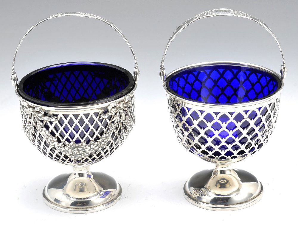 Two American silver small baskets with glass liners.