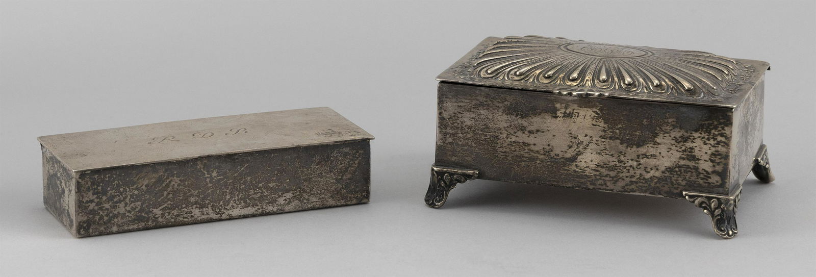 TWO AMERICAN STERLING SILVER BOXES Both rectangular.