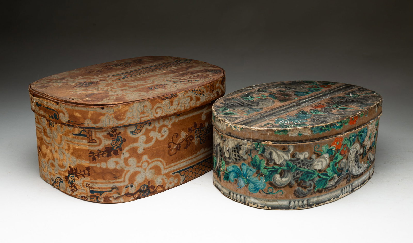 TWO AMERICAN WALLPAPER BAND BOXES.