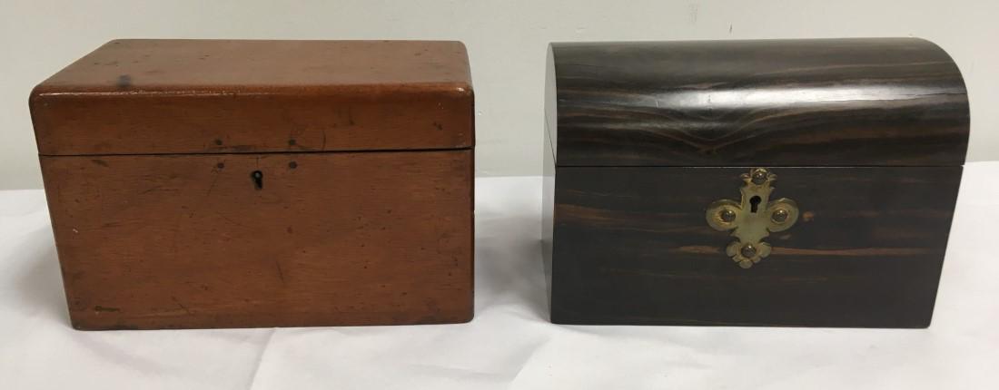 TWO ANTIQUE 19TH C WOODEN TEA CADDY BOXES
