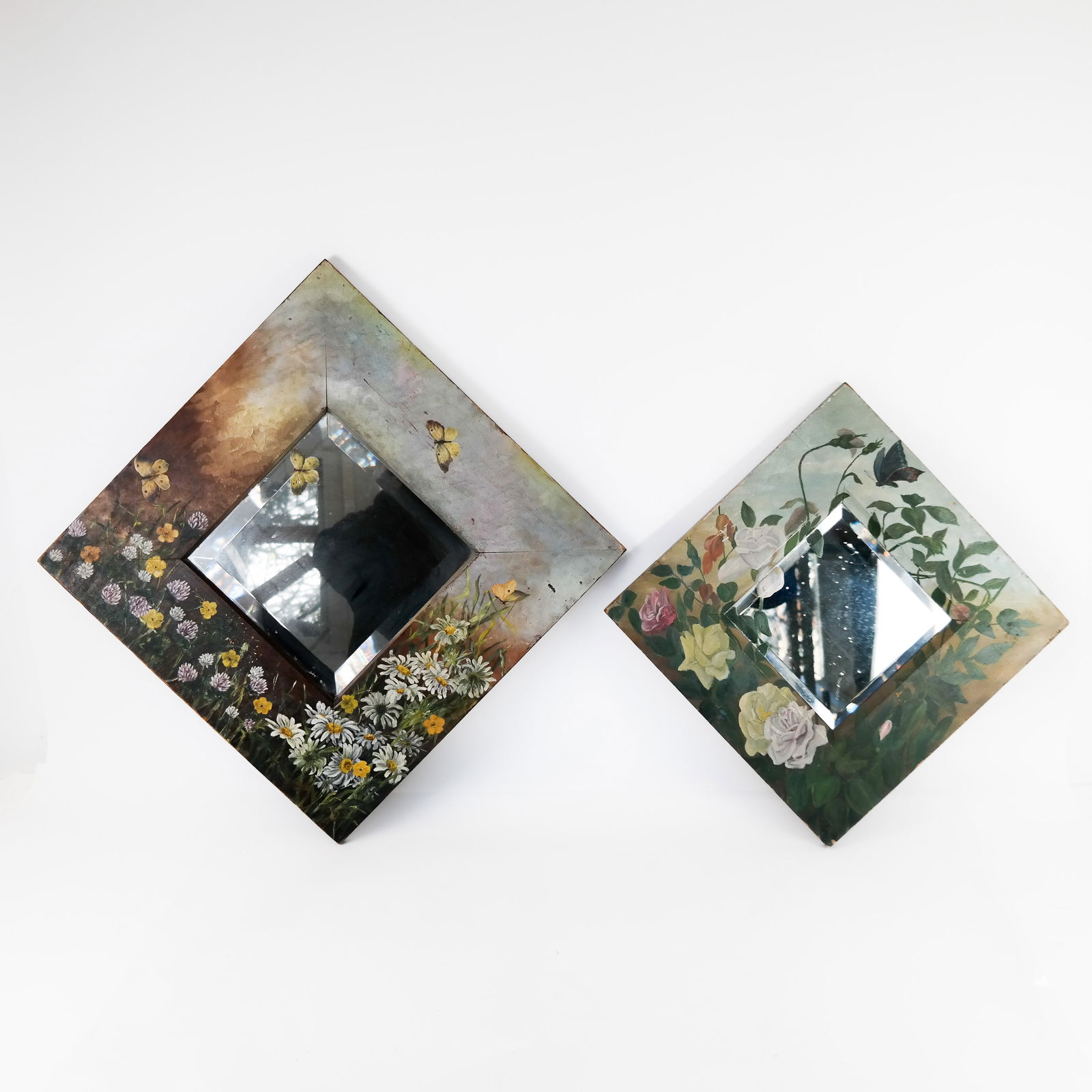PARKER BROTHERS Aesthetic Movement Framed Mirror. Pierced Brass with Flower, Leaf and Berry Motif. CPARKER BROTHERS Aesthetic Movement Framed Mirror. Pierced Brass with Flower, Leaf and Berry Motif. Circle Frame within a Square Frame. BRADLEY and HUBBARD style Dimensions: Height: 18 inches, Width: 1