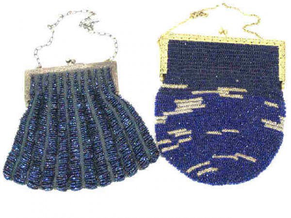 TWO ANTIQUE BEADED PURSES ORNATE METAL FRAMES