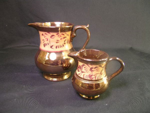 TWO ANTIQUE COPPER LUSTER WARE PITCHERS