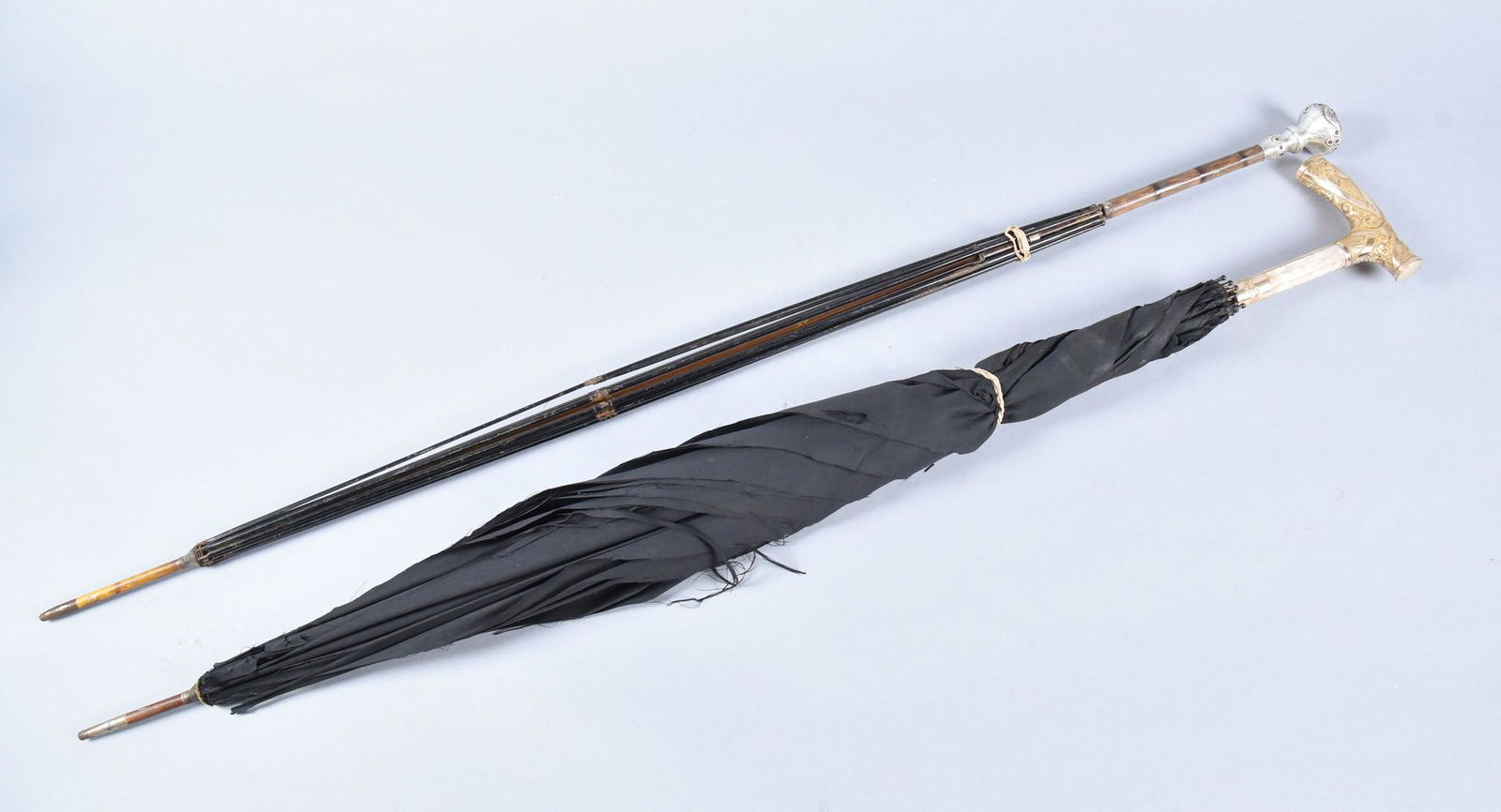ASSORTED GADGET AND OTHER CANES / WALKING STICKS, LOT OF TWO4 days LeftGerman Walking. Cane & Victorian UmbrellaMar 09, 2026(2) Early 20th Century Gentleman’s Walking Canes6 days Left(2) Antique Swagger Canes6 days LeftHardwood Handle, C?©line Designer Umbrella, Late 20th CenturyApr 01, 20263 Assorted Wood Walking Sticks & Umbrella, One Carved Fish Handle (32"L), One Carved Phrenology HeadMar 10, 202619th Century Ceylon (Sri Lanka) Piha Kaetta Knife w/ Gilt & Silver Inlay, Carved Handle & ScabbardMar 14, 2026Discreet 19th C. European SWORD CANE Bamboo Style HiltMar 28, 2026Late 19th–Early 20th C. Silver Pommel Sword Cane6 days LeftFrench Silver Plate Handle Walking Canes, 2Mar 26, 2026Early 20th C. Silver Mounted Cane w/ Hidden Telescope6 days LeftFine Gilt Silver Japanese Parasol HandleMar 15, 2026Antique Walking Stick with Silver Plated Handle, Late 19th–Early 20th Century, 38 in.Mar 15, 2026American Civil War era GENTLEMAN SWORD CANE FINE Bone PommelMar 28, 2026Fine Antique Gold-Filled Repoussé Dress Cane w/ Embossed Handle6 days Left1867 Silver Pommel Presentation Dress Cane6 days Left