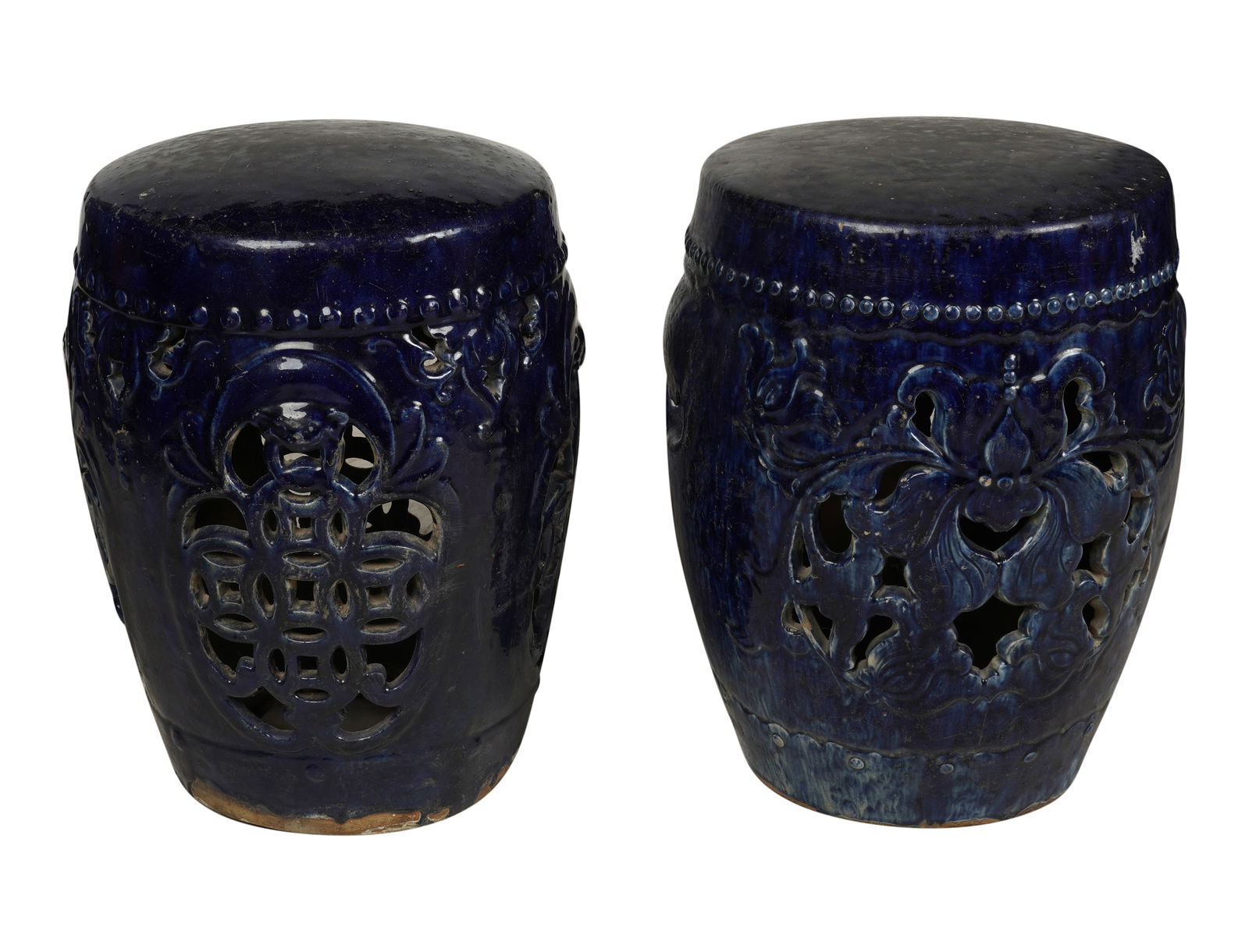 Two Asian Blue-Glazed Earthenware Garden Seats