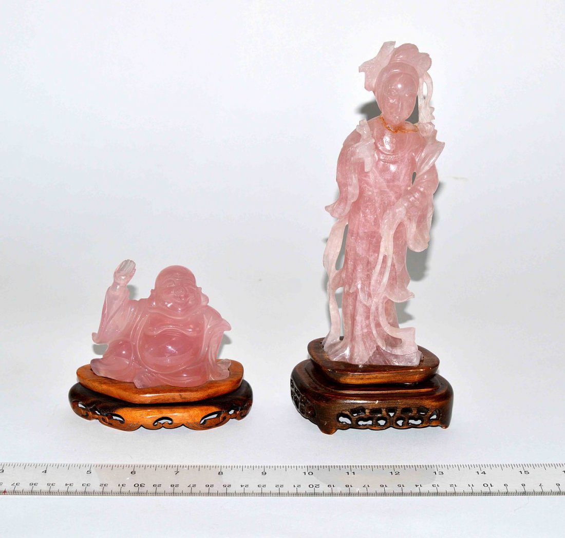 Two Asian Carved Rose Quartz Figures
