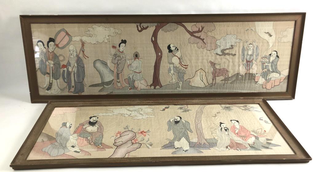Two Asian framed textiles