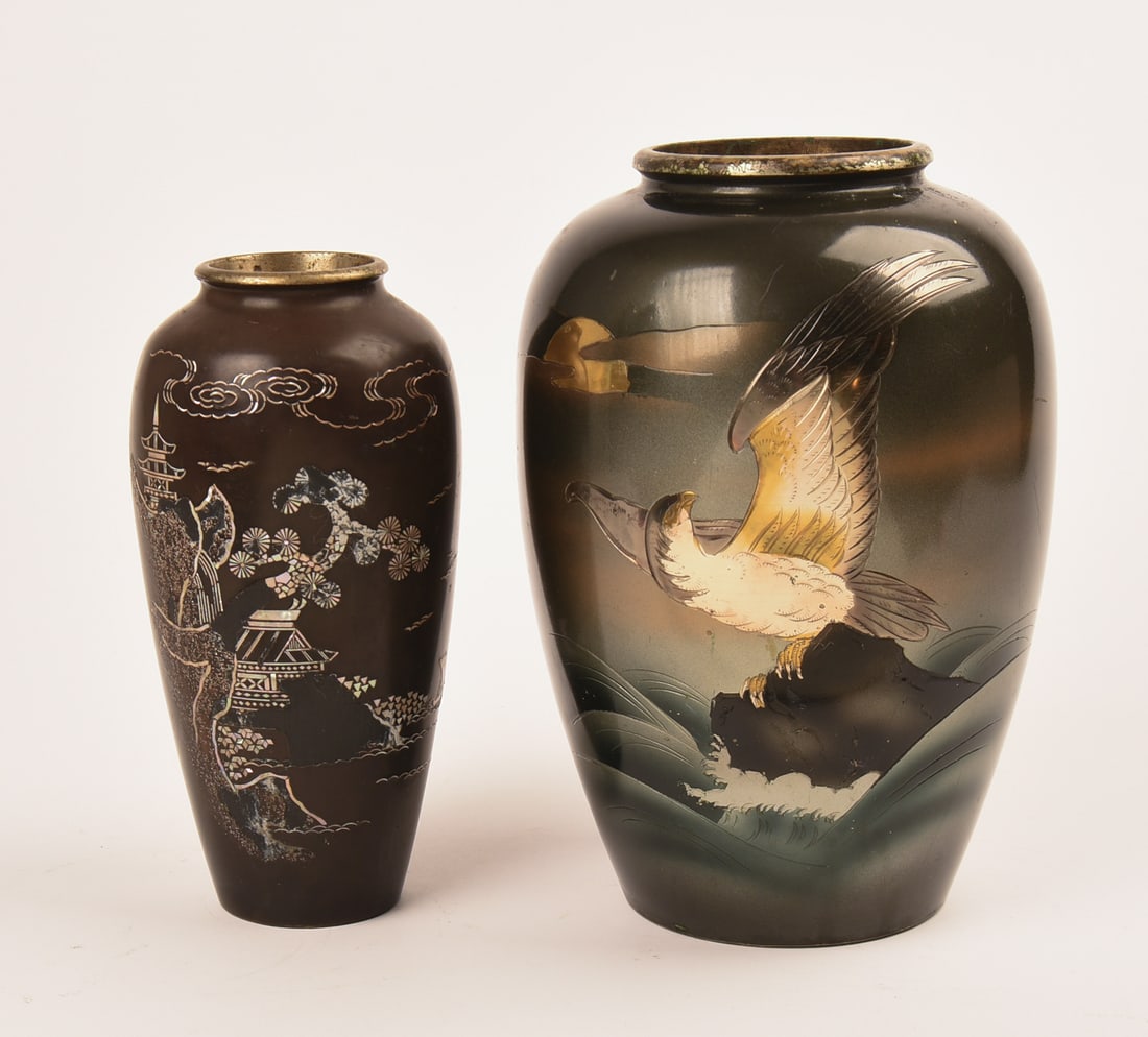 Two Asian Mixed Metal Vases