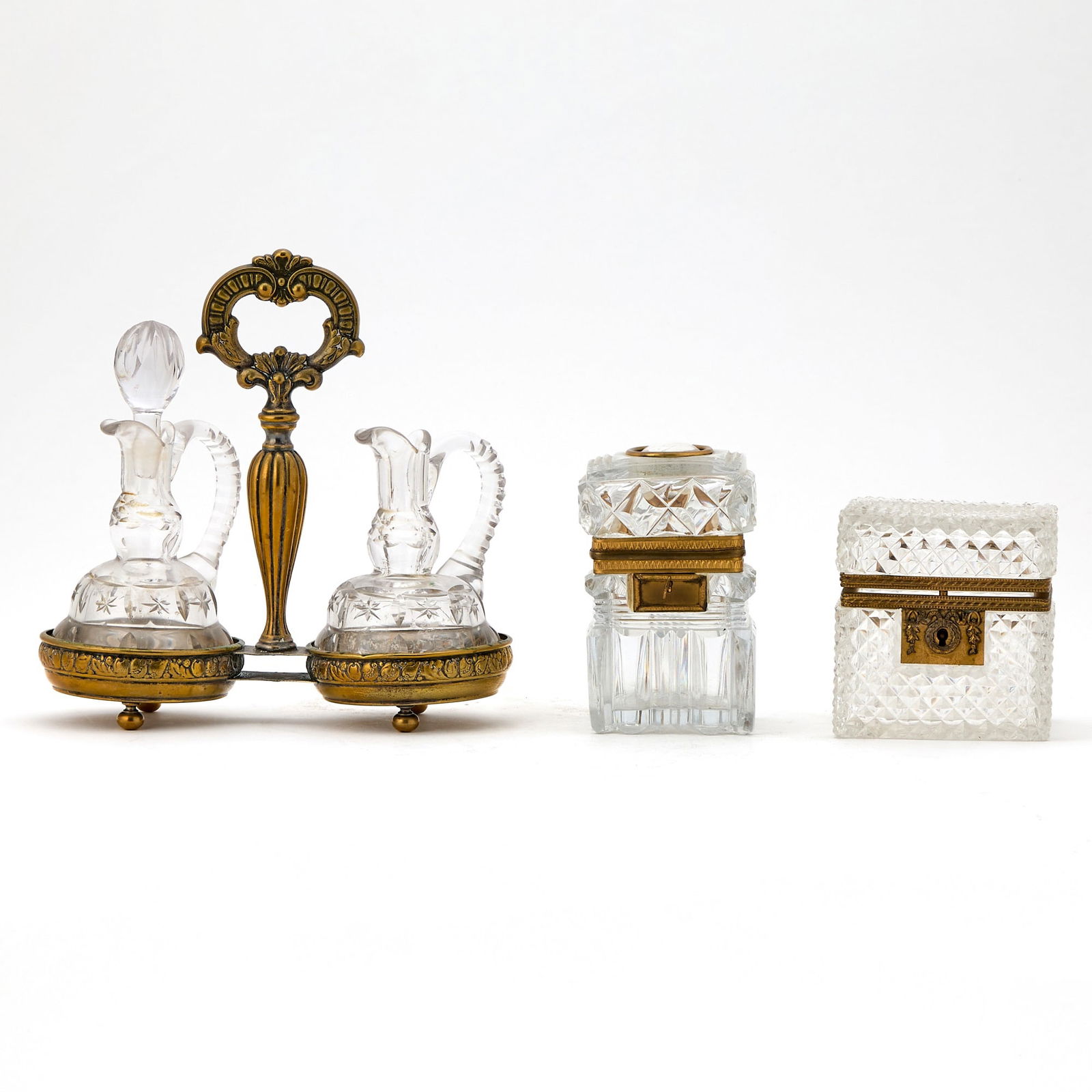 8 pc Lot Art Glass PerfumesMar 01, 20268 pc Lot Victorian Art Glass PerfumesMar 01, 2026Cut Glass Perfume Bottles and Vanity Decanter LotFeb 27, 2026Lot of Five C.F. Monroe "Wave Crest" Glass PiecesMar 14, 2026Baccarat Perfume Bottle Tea Caddy LotMar 28, 2026SIX ANTIQUE CUT GLASS & CRYSTAL SCENT BOTTLES, ETCMar 07, 2026Group of Three Antique Glass Oil LampsMar 15, 2026(9) METAL-MOUNTED TABLEWARE, DECANTER SET & PICTURE FRAMES3 days Left(22) PARCEL-GILT CUT CRYSTAL DRINKWARE, COUPES, FLUTES & TUMBLERS3 days LeftDecorative (10) Perfume Bottles / Oil Lamps7 days Left5 French Neoclassical Style Table Articles7 days LeftTWO SIMILAR BOULES D'ESCALIERS, MODERN, TOGETHER WITH TWO GLASS JARSVintage Gold Filigree Ormolu Vanity SetMar 06, 20263 French Gilt Metal and Glass Vases and 2 Boxes7 days LeftA SET OF THREE CONTINENTAL JEWELED AND ENAMELED GOLD-MOUNTED CUT GLASS COSMETIC CONTAINERS PROBABLY13 hrs Left5 French Neoclassical Style Table Articles7 days Left