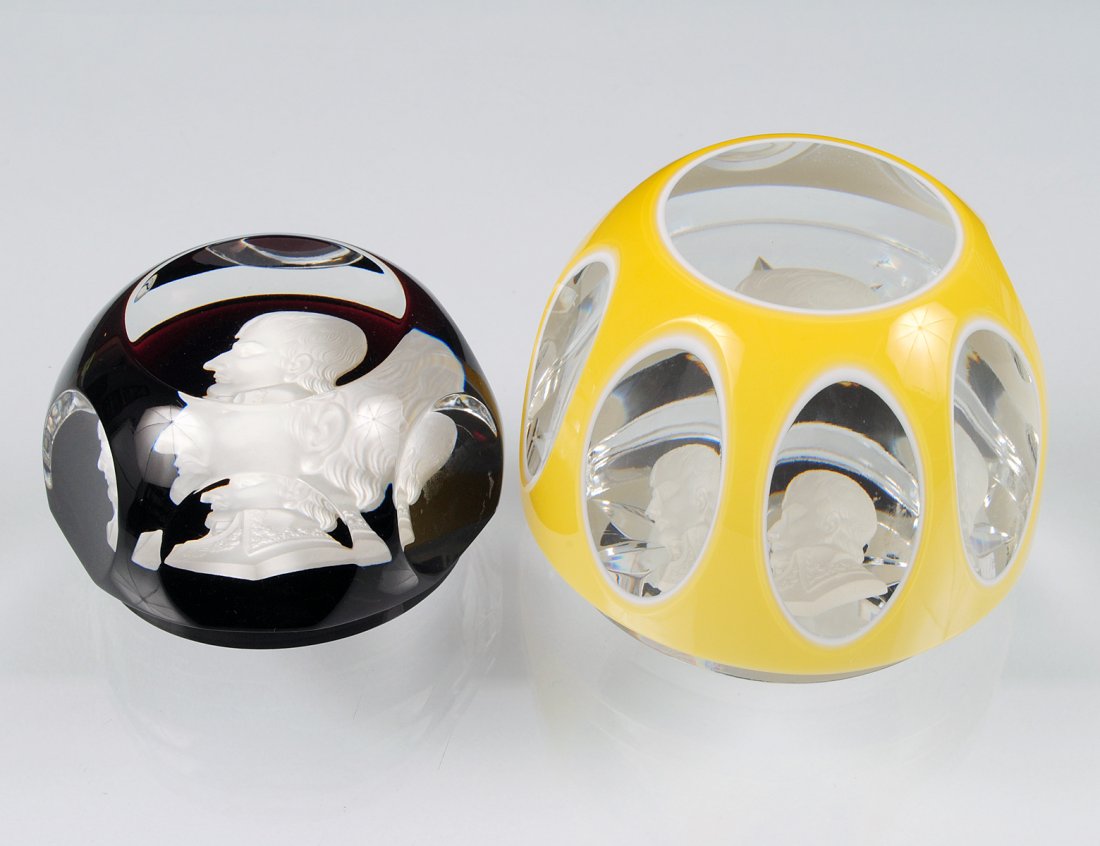 TWO BACCARAT SULPHIDE CRYSTAL PAPERWEIGHTS