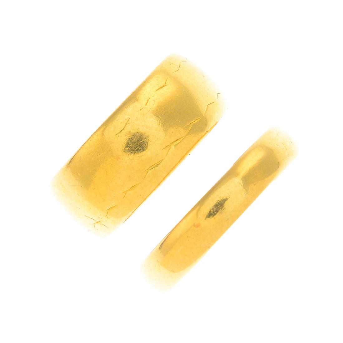 Two bands rings. To include a 22ct gold plain ring,