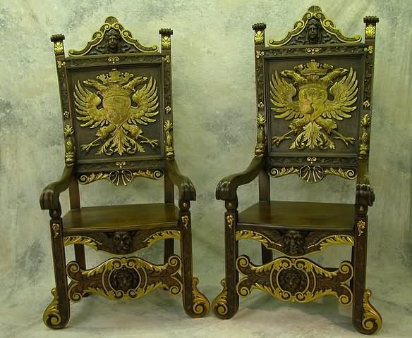 Two Baroque Carved Arm Chairs.