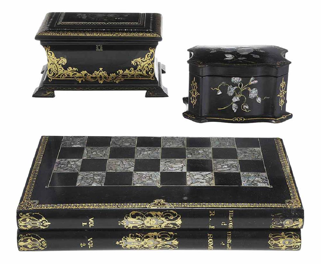 LOT OF THREE CHINESE VINTAGE JEWELRY BOXES6 days LeftKorean Lacquer MOP Shell Inlay Boxes & Tray 3p LOT3 days LeftSIX ASSORTED ANTIQUE WOODEN BOXESMar 07, 2026Antique lap desk, Chinese lacquer jewelry box, and more boxes3 days LeftAn Indian Pietra Dura Inlaid Marble Chess Board on a European Ebonized Game Table, 18TH CenturyMar 06, 2026Russian Kholuy Lacquer Fairy Tale Jewelry Box3 days LeftVintage Black Lacquer Secretary Desk with Chinoiserie Decoration3 days LeftRare Flemish Baroque Carved Ebony Cabinet with Gold and Silverwork, Stump Work, and Silk Needlework3 days LeftA CHINESE EXPORT BLACK AND GOLD LACQUER CHESS AND BACKGAMMON BOARD, FIRST HALF 19TH CENTURYTwo Asian Wood Boxes3 days LeftA Persian Khatam Wooden Backgammon W/ Case Bag5 days LeftCollection Antique English Desk Top Valuables Boxes5 days LeftA Chinese Lacquer Writing Box with Inlaid Panels5 days LeftChinese Black Lacquer Jewelry Box Inlaid Figural S1 day LeftChinese Export Lacquer Game TableMar 07, 202619th Century Tea Caddy & Other BoxesMar 07, 2026