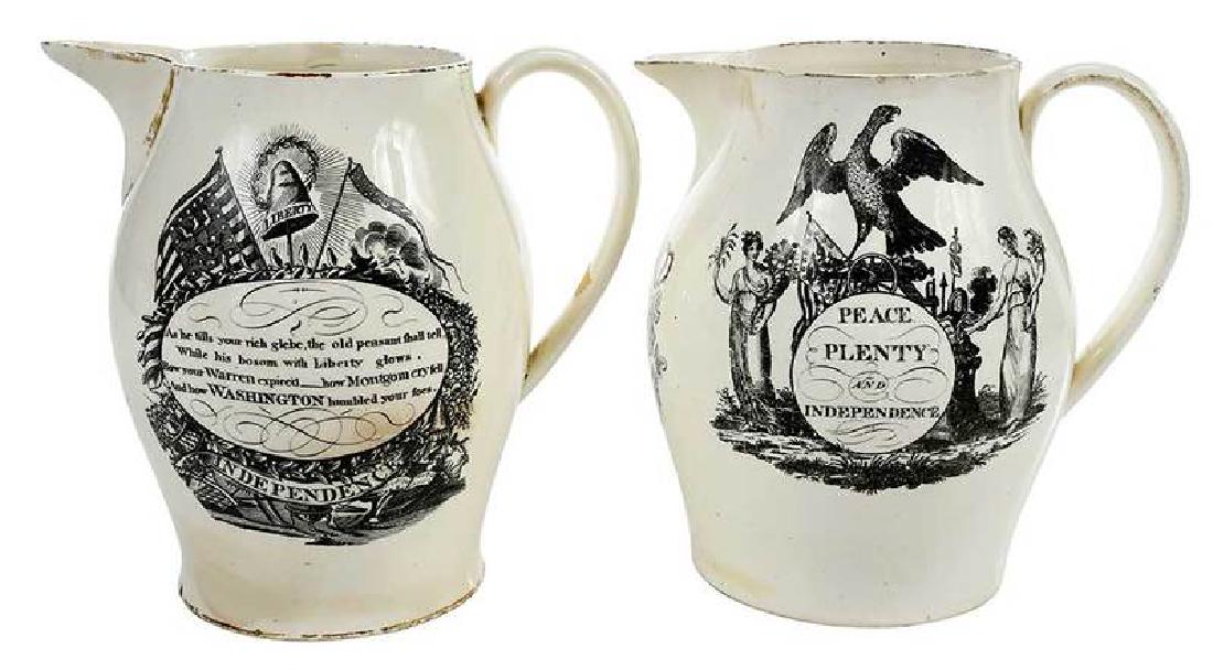 Two Black Transfer Decorated Creamware Pitchers