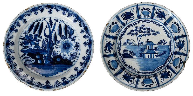 Two Blue and White Delftware Chargers