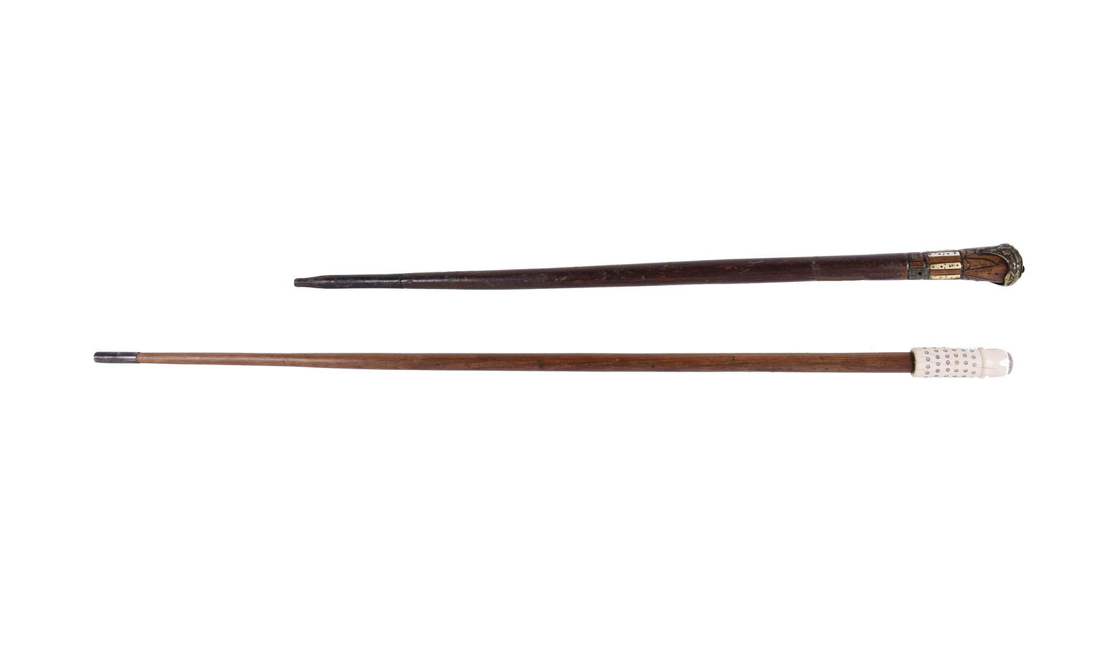 TWO BONE MOUNTED OR BONE & METAL MOUNTED WALKING STICKS