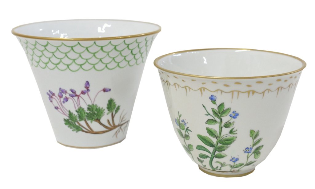 TWO BOTANICAL DANISH PORCELAIN CACHE-POTS