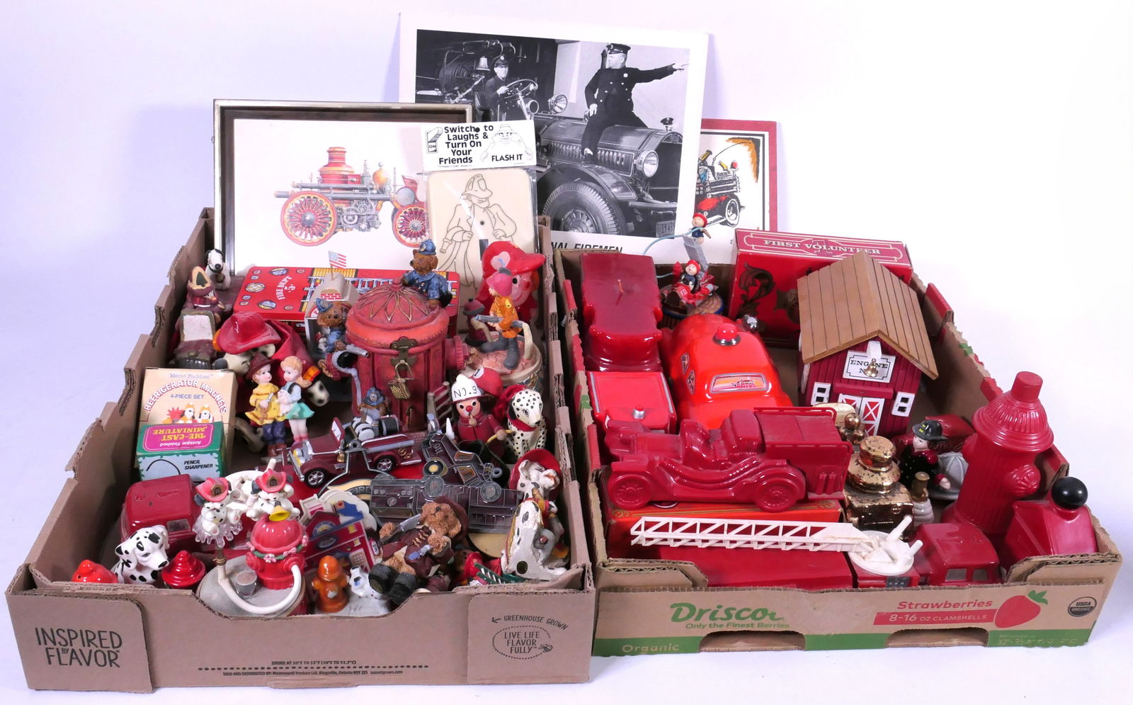 Two Boxes of Fire Fighter Decor