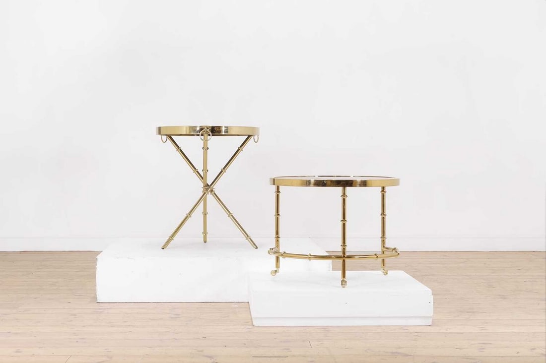 A lot of two Louis XV style gilt carved wood decorated side tables with white marble topsFeb 24, 2026Pair of French Empire Style Kidney Bean Bedside TablesFeb 26, 2026MCM Milo Baughman Style Brass Tear Drop Ying/Yang Tables for DIAFernando and Humberto Campana, Racket Animal Center TableFeb 26, 2026Pair of Bagues Style Gilt Bronze Neoclassical End Tables or PedestalsPAIR OF MASTERCRAFT GLASS TOP BRASS SIDE TABLES3 days LeftPair Directoire style mahogany tables3 days LeftElegant Pair of Smoked Glass Brass Tables by Tommaso Barbi2 days LeftVintage Baker Campaign Style Brass & Mahogany Coffee Table Set of 2Mar 03, 2026Bahman Dadkhah (born 1941) Set of two coffee tables Unique pieces2 days LeftPair of Antique Brass Cannonball Andirons8 hrs LeftPair of Marble Top Greek Key Bouillotte or End Tables, Manner of JansenPair of Antique Brass Andirons8 hrs LeftCORRADO CORRADI DELL'ACQUAFeb 27, 2026Florentine Style Pink & Gold Nest of 3 TablesFeb 23, 2026PAIR OF PAINTED IRON DRINKS TABLES IN THE MANNER OF JEAN-MICHEL FRANK HAVING BRONZE DETAILS,Feb 26, 2026