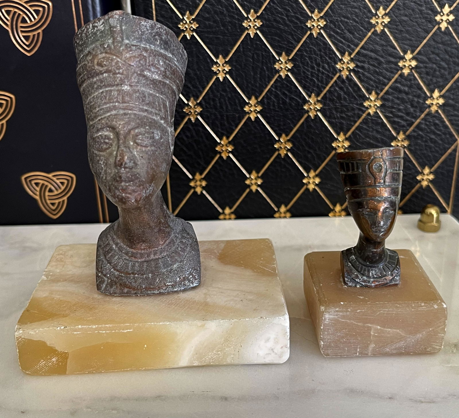 TWO BRONZE AND ALABASTER NEFERTITI BUSTS
