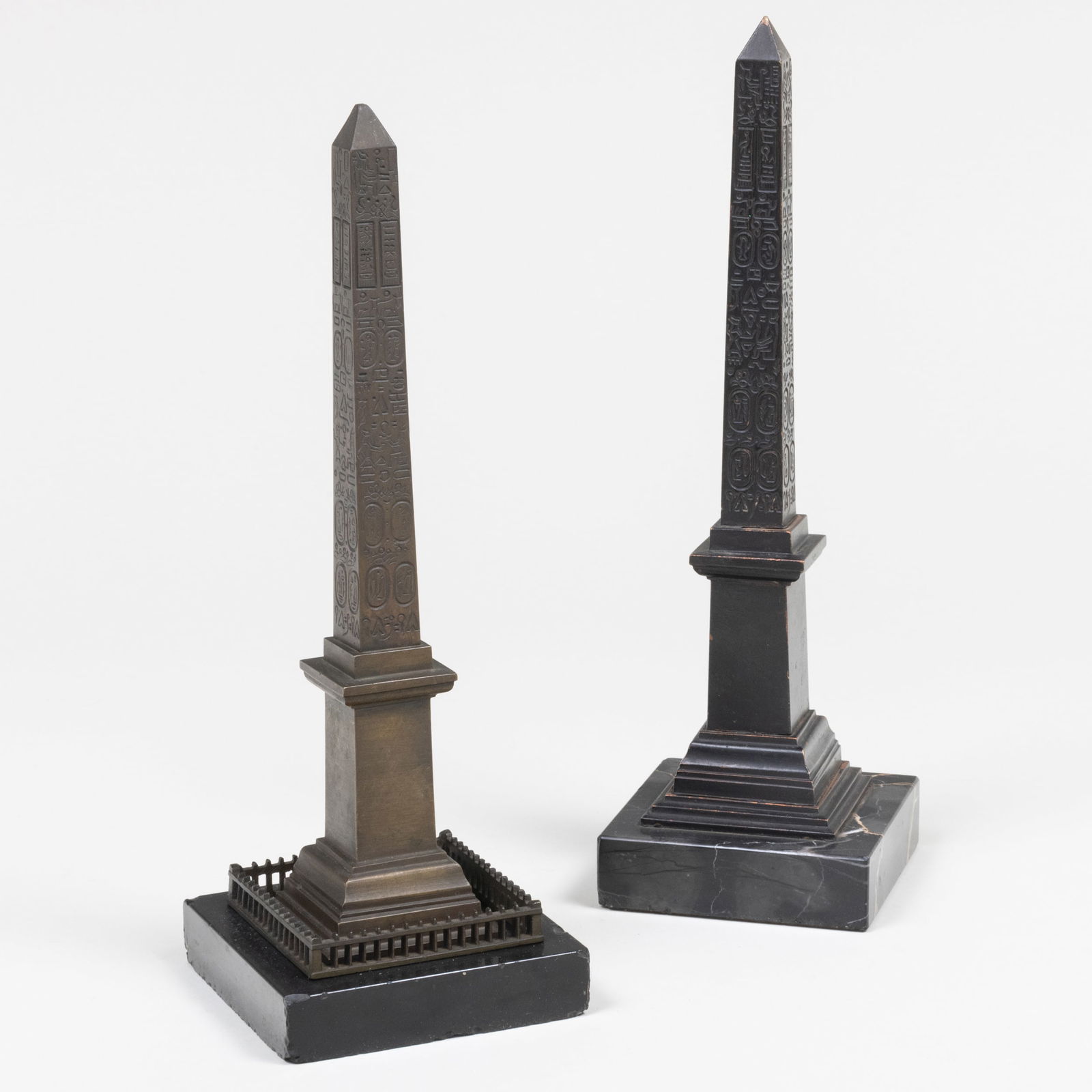 Two Bronze and Marble Luxor Obelisks