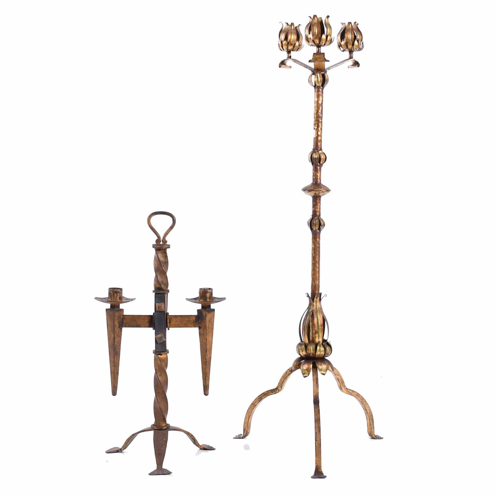 TWO BRONZE CANDELABRA, CIRCA 1950.