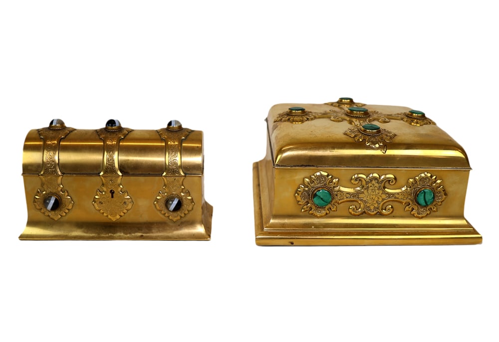 Lot 2 Boxes Including A HumidorMar 07, 2026(3) ORMOLU-MOUNTED PEKING GLASS VANITY BOXES & ENAMELED CASKET3 days LeftEnglish Wooden Boxes6 days Left(4) COLLECTION OF CARVED WOOD, INLAID & LEATHER-CLAD TABLE BOXES2 days LeftTWO ANTIQUE WOODEN DESK BOXES / CASKETMar 07, 2026A SET OF GILT BRONZE SCRIPTURE VOLUMES INLAID WITH GEMSMar 05, 2026(2) Henry Hart Double Door with Medallion Cast Iron Still Safe BanksMar 01, 2026Two English Victorian Lap DesksMar 01, 2026Pair of Antique Carriage Lamps, tin and brass with beveled glass, the ruby round glass inserts are5 days LeftGrouping of two antique boxes including a French ormolu trinket boxMar 15, 2026A beautiful copper gilt filigree burned blue and dark Eight Immortals screenMar 22, 20263 English Boxes & Erhard & Sohne Bronze Box, 19th C6 days LeftRosewood and Burlwood Boxes, 2Apr 14, 2026Vintage Gold Gilded Heavy Copper Coffin Trinket BoxMar 17, 2026(2) ENGRAVED TOBACCO / SNUFF BOXESMar 15, 2026Reuge Music Boxes, 2Mar 12, 2026