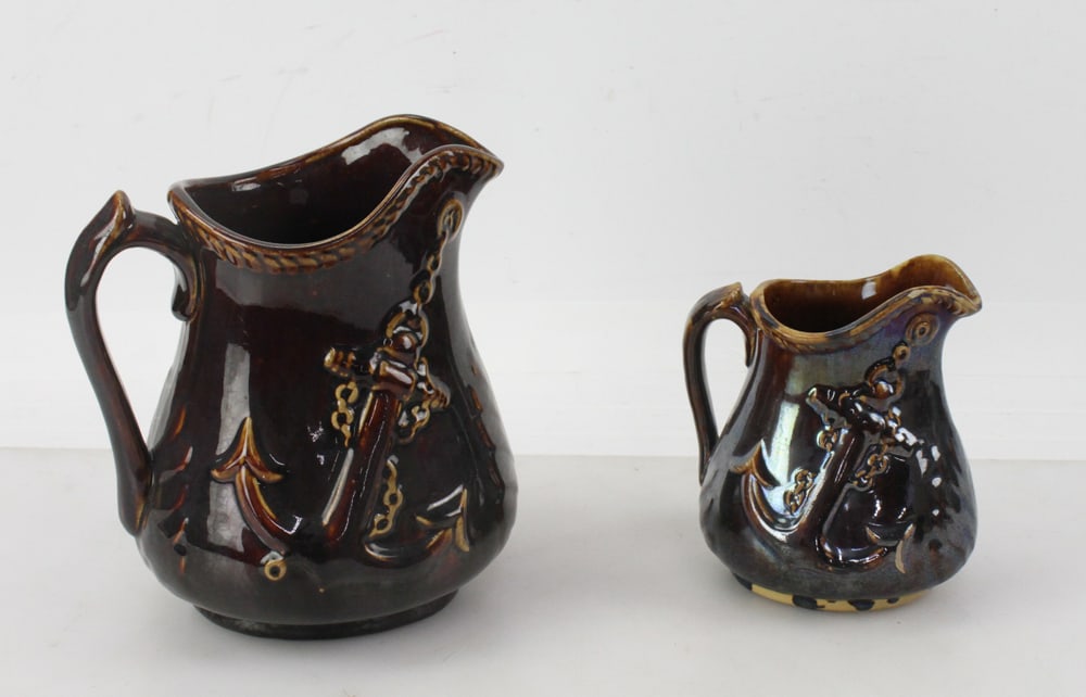Two Brown Pitchers with Anchor Design