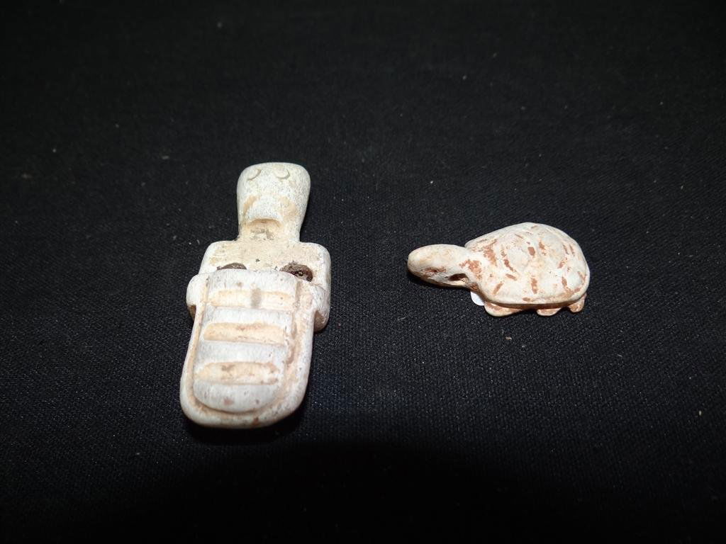 TWO CALCIFIED CHINESE JADE PENDANTS