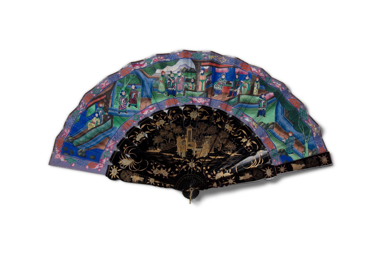 TWO CANTON BONE INLAID LACQUER FOLDING FANS 晚清 广作木彩