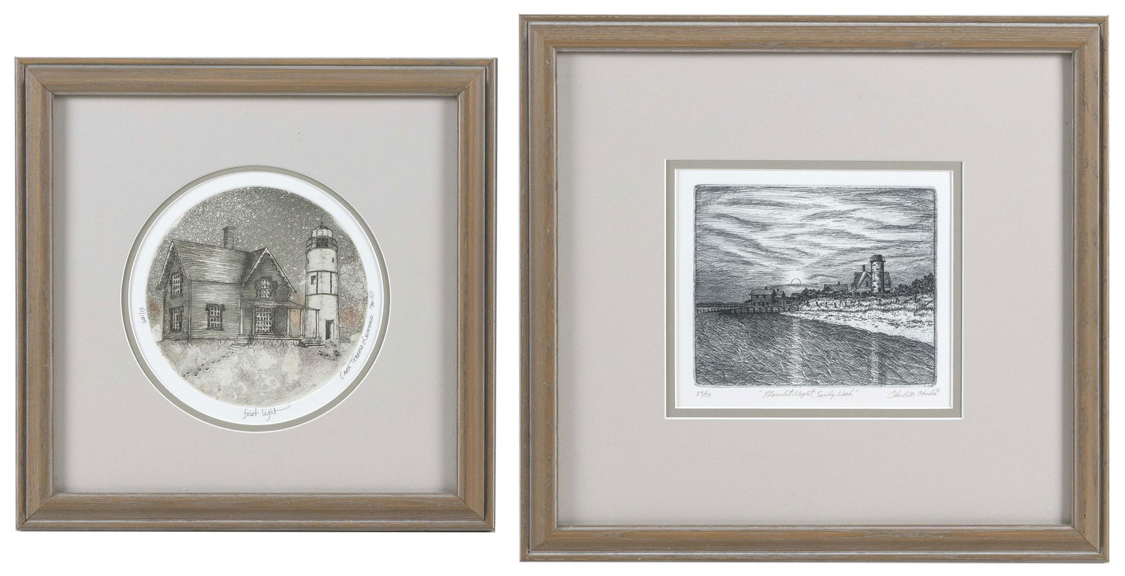 TWO CAPE COD LIGHTHOUSE-THEMED ETCHINGS Cape Cod,