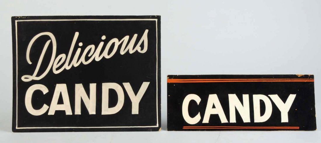 Two Cardboard Candy Signs.