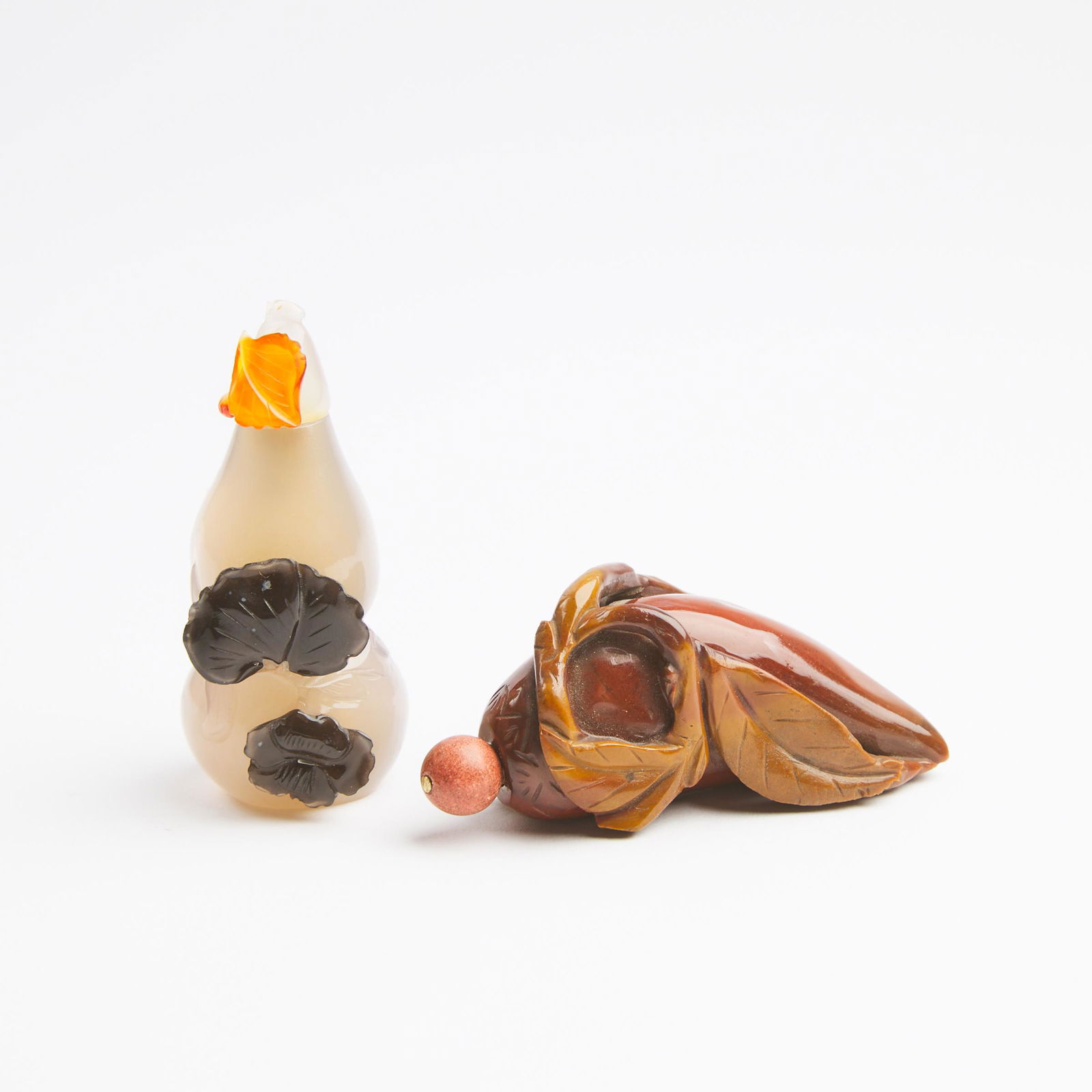 Two Carved Agate 'Double Gourd' and 'Melon' Snuff Bottles,