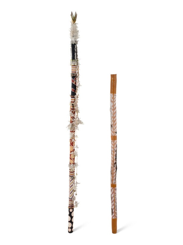 Two Carved and Painted Aboriginal Staffs