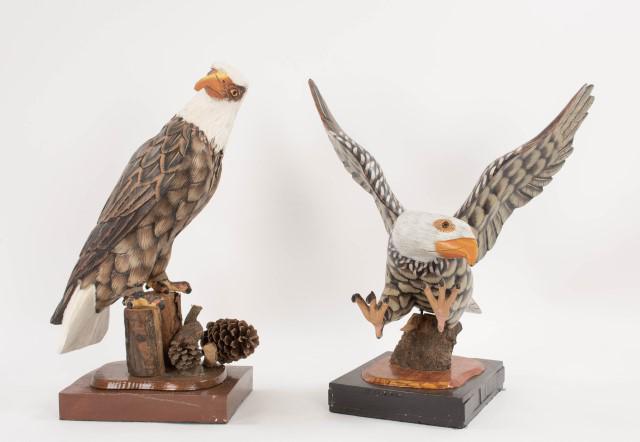 Two Carved and Painted Wood Eagles