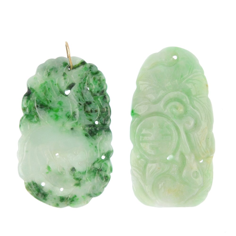 Pair of Maya Jade Miniature Libation Vessel Pendants (2