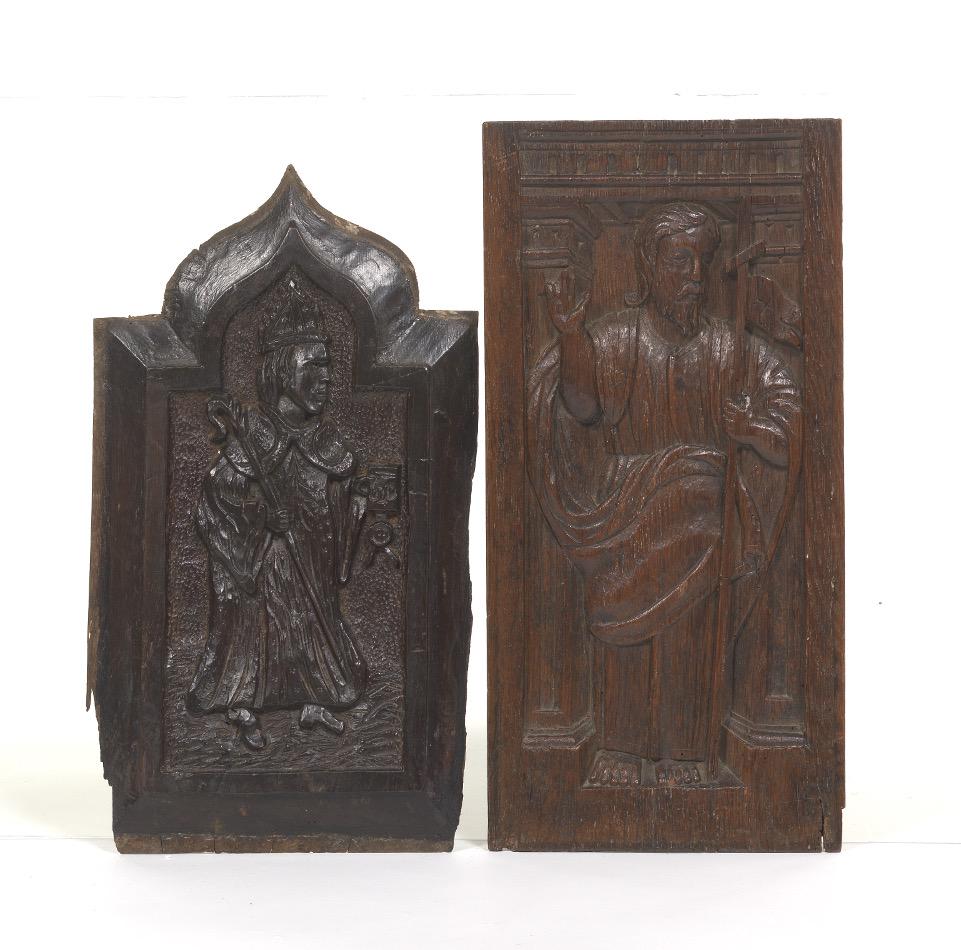 Two Carved Oak Gothic Style Religious Panels