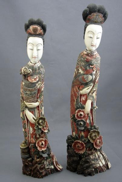 TWO CARVED POLYCHROMED IVORY FIGURES