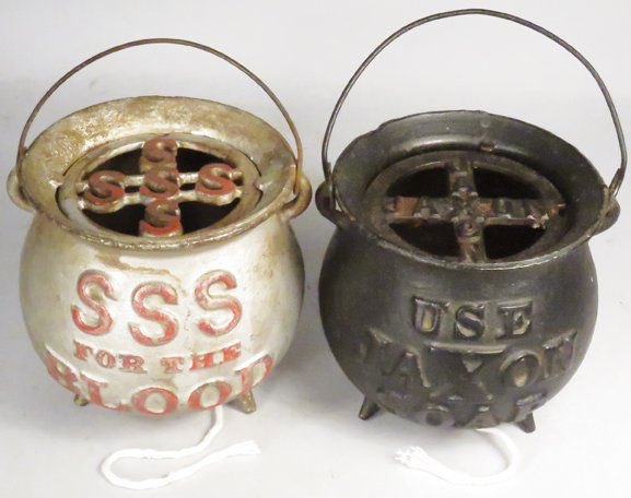 Two Cast Iron Advertising String Holders