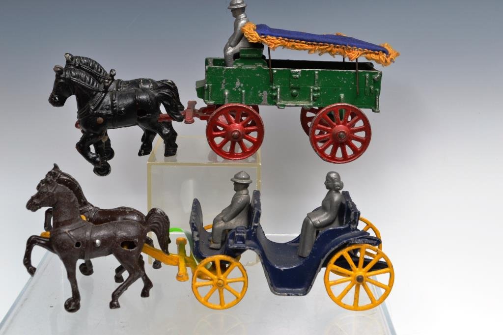 ASSORTED VINTAGE CAST-IRON TOYS, LOT OF THREEMar 05, 2026Toy Trucks12 hrs LeftModel of 2-horse hitch with 3-seat dog cartMar 27, 2026Model of 2 draft horses hitched to wagonMar 27, 2026Model of 2 draft horses hitched to hay wagonMar 27, 2026Antique cast iron Conestoga Wagon bookends.Mar 06, 2026ONE HORSE COACH TOYFeb 28, 2026Vintage Cast Iron Horse-Cannon Toy2 days LeftTwo Horse Buckboard Type DrayMar 07, 2026CART & HORSE TOYSFeb 28, 2026Scarce Two Horse Stake WagonMar 07, 2026Toy Fire WagonMar 14, 2026HORSE CART TOYSFeb 28, 2026Cast Iron Painted 8 Team Pulling Wagon with Drivers and BarrelsMar 02, 2026Cast Iron Toys and Parts4 days LeftTwo Horse Nickel Plated Ladder WagonMar 07, 2026