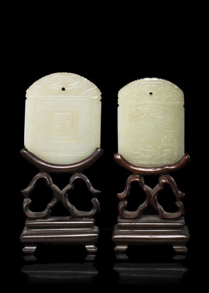 Two celadon jade plaques. each decorated with landscape