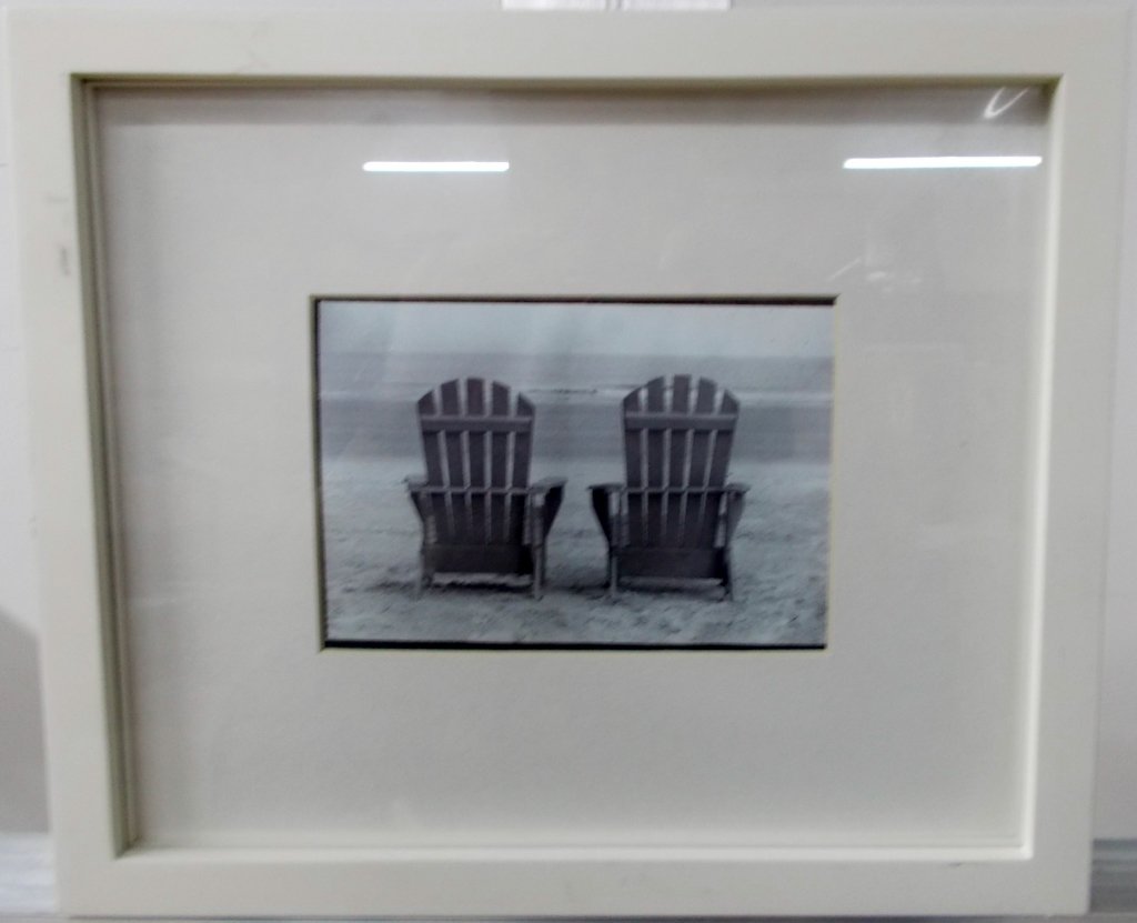 SoldMichael Kenna (British, b. 1953)Two works of art; Beach Chairs, Pompano Beach, Florida, 1992; Sepia toned gelatin silver print (framed); Signed, dated and numbered 12/45; 7 3/8" x 7 3/8"; High Chair, Anchorage, Alaska, 1989; Sepia tSee Sold Price