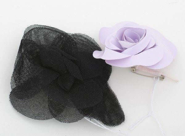 SoldTWO CHANEL CAMELLIA FLOWER BROOCHESTwo black and white camellia flower pins, comprising one black in a woven fabric and one white plastic, both having maker's label to back. Provenance: From The Estate of Vectra Orkin Barnette, AtlantaSee Sold Price