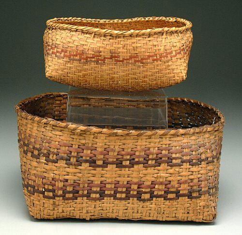 Two Cherokee river cane gathering basket