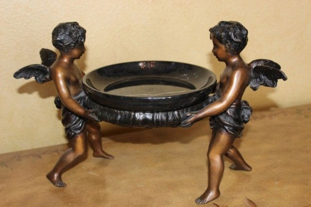 Two Cherubs Angels Bronze Sculpture / Candy Dish