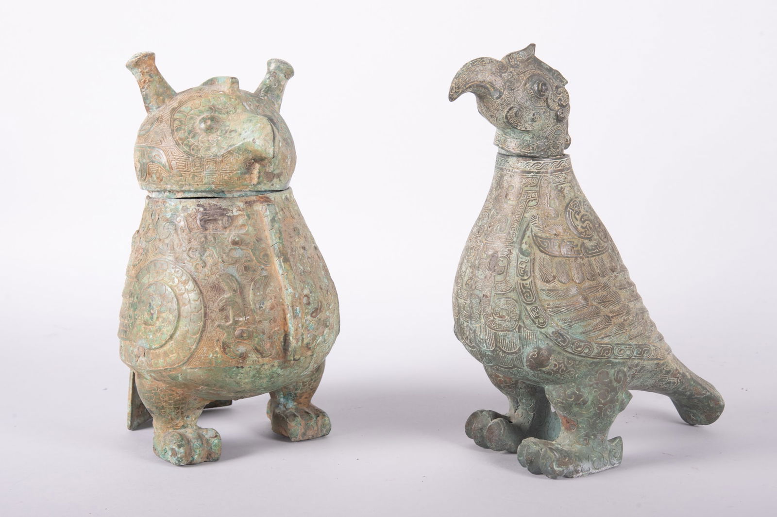 Two Chinese Bronze Bird Covered Vessels